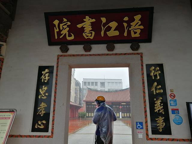 从总兵署出来,我们骑上机车去了浯江书院。浯江书院是清乾隆四十六年县丞欧阳懋德以义学地建。黄汝试捐银476两,监生徐行健捐1000两,建大门、东西廊学舍各8间,中为讲堂、内祀文昌,外环围墙。后建朱子祠。后汝试再捐膏火银2000两,置田产以充费用。嘉庆间县丞李振青重修。道光间岛人吴献卿秉父遗愿捐银4000两,及官绅捐银1000两发典生息,以充经费。并于西廊建福德祠祀巡道倪锈,县丞欧阳懋德、李振青等;东廊建客燕斋祀吴琳公及献卿父子。