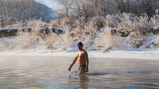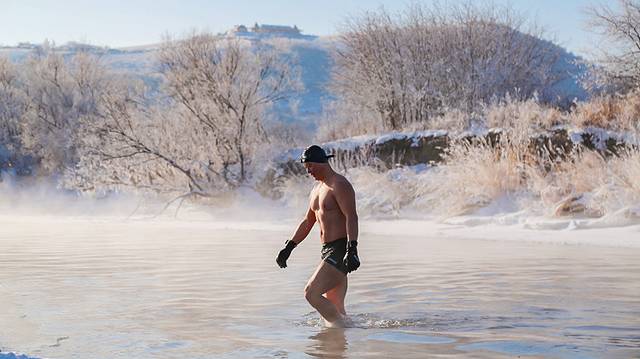 中午时分,可以来这里看冬泳,常规温度为零下35°,水里温度平均在0°左右,每天都有当地人来这里冬泳,真的不得不佩服这些人。我们裹着围巾、戴着帽子、穿着厚厚的羽绒服雪地靴,贴着暖暖,都直呼冷……他们却毫无畏惧。此外,很多人都知道夏天可以漂流,但在额尔古纳,冬天也可以漂流,绝对是100%难得的体验。