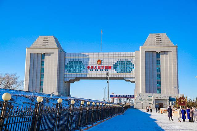 目前我们看到的是第五代国门,前面四代的微缩景观在国门左边的广场上。来到这里,第一眼看到的是火车与国门,来往俄罗斯的物件与在这里交换到中国国内的火车上,火车是不能开出这里的。