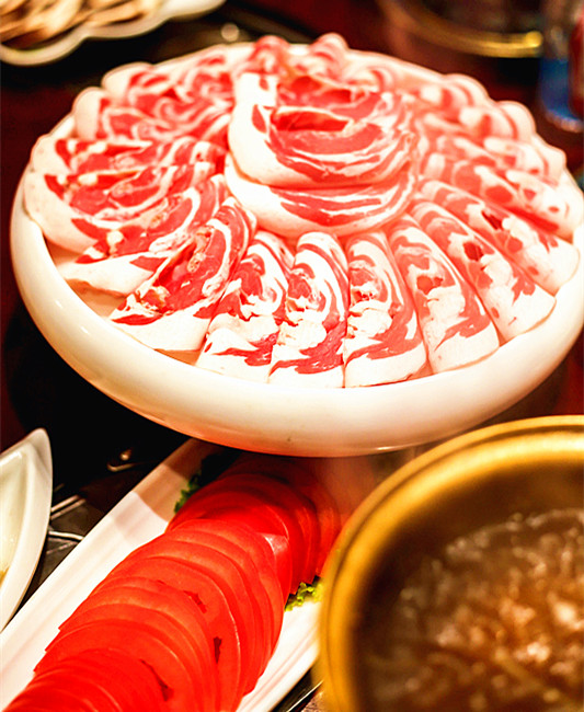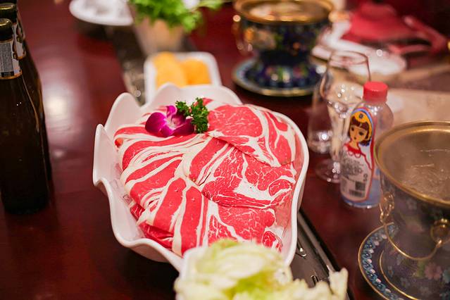 首先,牛羊肉都是绝对新鲜的,都是前一天去挑选,然后回来宰杀的,在基础上又挑选出适合吃火锅的。