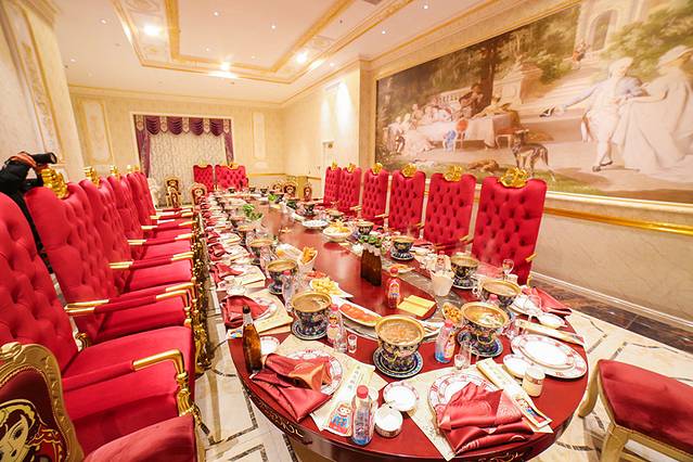 再者,有个可以容纳25人的包厢,西方皇宫餐厅风,加入了旋转火锅的方式传送菜品。