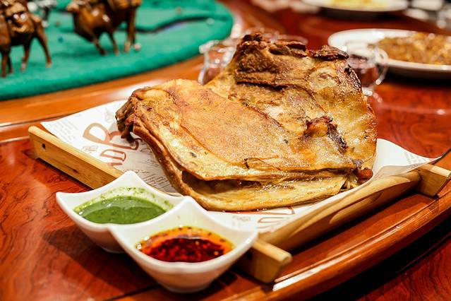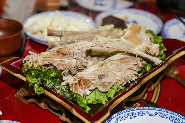 这是内蒙古大草原各族人民千百年来最喜欢、最常用的传统食品,它的制作和吃法别具一格:将羊按各关节带骨分割成数块,放入不加盐和其它佐料的白水锅内,用大火烧,保持原汁原味,适当控制火候,只要肉已变色,即可食用。手扒肉肉鲜而不膻,肥而不腻,易于消化。昨天在蒙古包体验了一次自己做自己吃,不爱大块吃羊肉的我,吃了估计我活到现在的总数[捂脸]真的好吃。