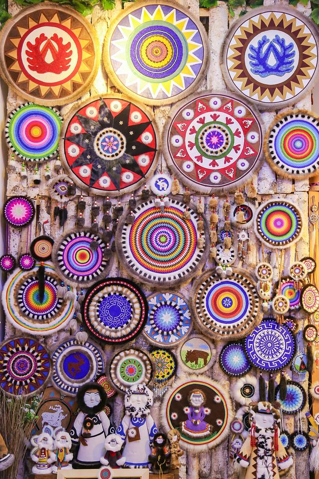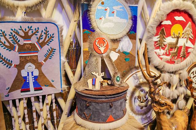 太阳花是鄂温克民族文化的浓缩体现,现在也成为艺术符号,被开发为文化产品。买了耳罩,耳朵上搭配了太阳花,很可爱,价格也很便宜,30元/个,还有很多其他的,如挂件、服饰、杯垫等。在这里,也可以动手制作太阳花,对于太阳花的配色,没有固定的,可以根据自己的喜好来选择。每个人眼中的太阳都不一样,制作出来的也会是独一无二的太阳花,做完后,可以带走。