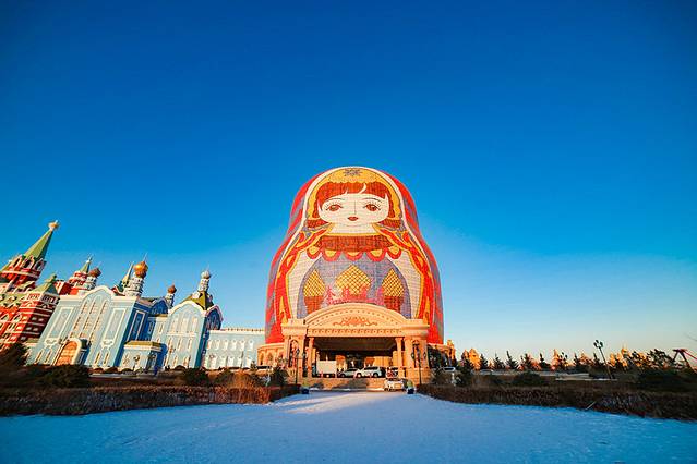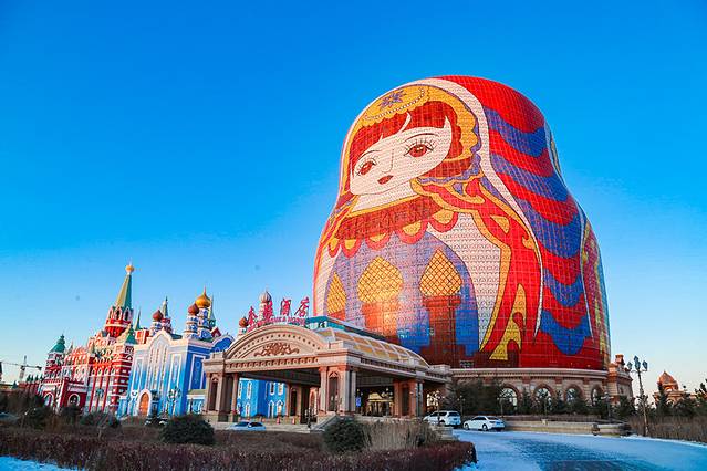 套娃真的不愧是满洲里的特色,这一特色ip用到了极致,小到便利贴,再到美食,最后大到景区酒店都有。套娃酒店,是满洲里的七星级酒店,就七星级而言,在中国都很少。