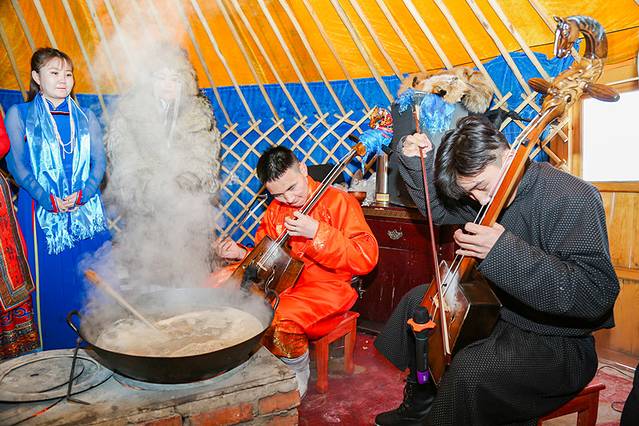 在观景区,可寻一户蒙古人家,做客,亲自动手煮一份手把肉,做一份奶茶,当做自己的午餐,边享受午餐边欣赏马头琴的演出,真正的去感受蒙古风情。