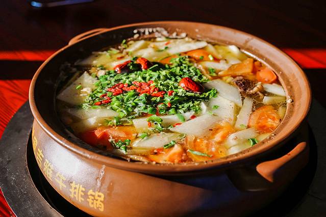 跟着当地人在才恩吉雅牛排锅餐厅,热乎乎的吃一顿,自制的腊牛排,配以白萝卜,另外有辣酱和韭菜酱,汤汁的味道非常鲜美,一个人喝了三碗汤。如果觉得淡,可以加点酱料,不过我喜欢原汁原味的。