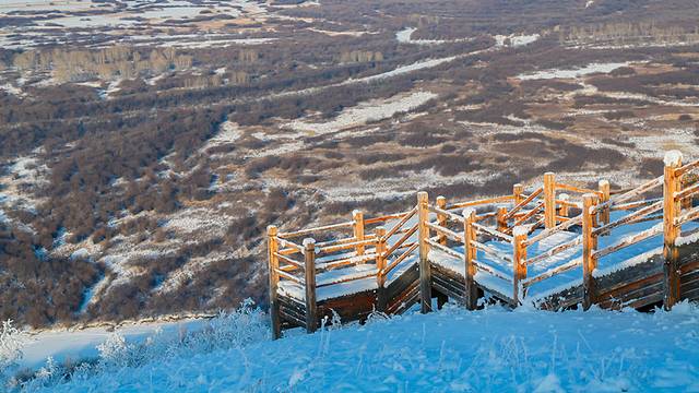 因为冬天的缘故,景区很多都没开放,我只去了观景区,这里是整个景区的制高点,位于景区东南侧小山峰上,是观景的最佳之地。虽然看不到景区的草原风光,海拉尔河、河岸及其湿地、呼和诺尔湖景色,却多了一份宁静与神秘。