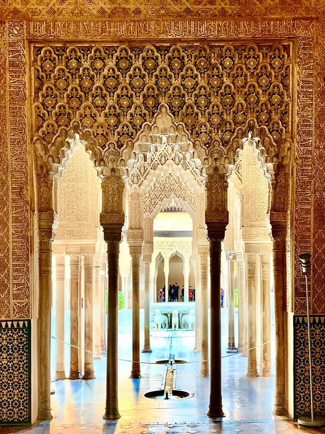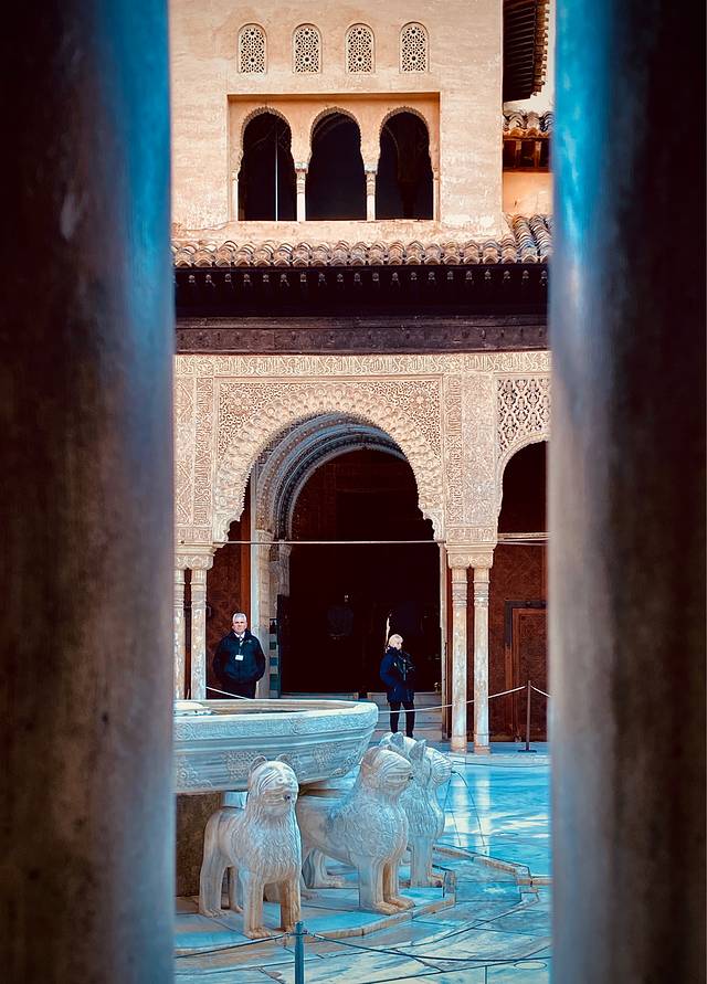 先把西班牙历史搞清楚,公元8世纪,北非摩尔人渡过直布罗陀海峡,入侵西班牙,占领了南方大部分地区。13世纪初,摩尔人在和西班牙人的战争中被击败,实力转衰。到后来摩尔人在西班牙的领土只剩下格拉纳达地区。此时,格拉纳达在摩尔人的统治下宣布独立,并开始建造伊斯兰建筑风格的阿尔罕布拉宫。公元1492年,西班牙人收复格拉纳达。北非摩尔人被赶出西班牙,阿尔罕布拉宫成为了一座废宫,整个建筑日渐荒废。目前,我们参观的阿尔罕布拉宫,是自1828年起,经过长期的修缮与复建,恢复原有风貌后的宫殿。