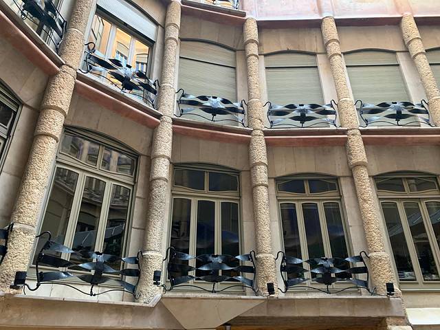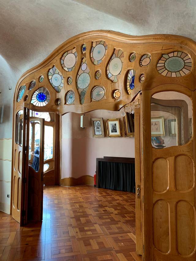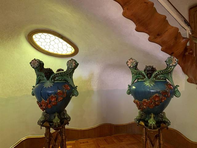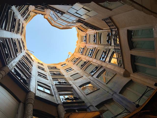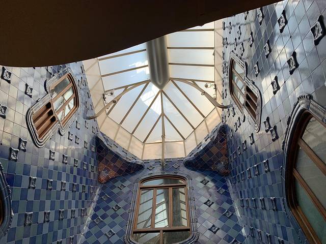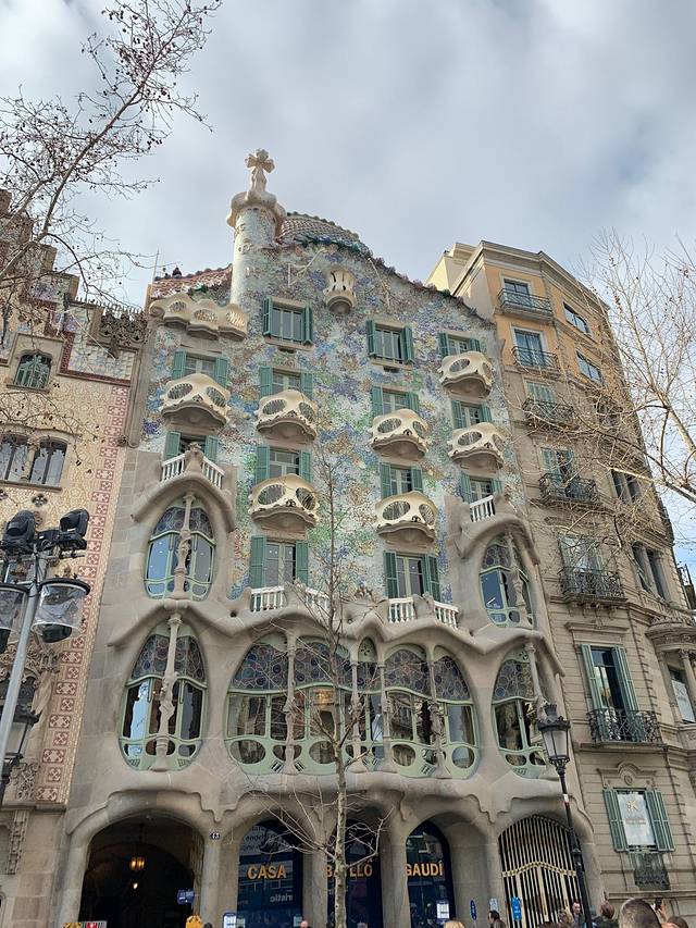 巴特罗之家(Casa Batlló)也是高迪的经典作品之一,以造型怪异而闻名于世。整个巴特罗之家就是一个海底世界,一共六层,波浪形的外观线条,并利用陶瓷片和彩色玻璃拼接成的马赛克墙面,让整幢建筑有了琉璃般的美感。