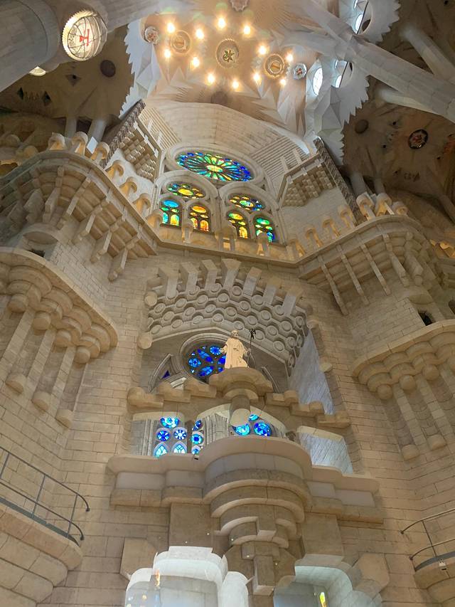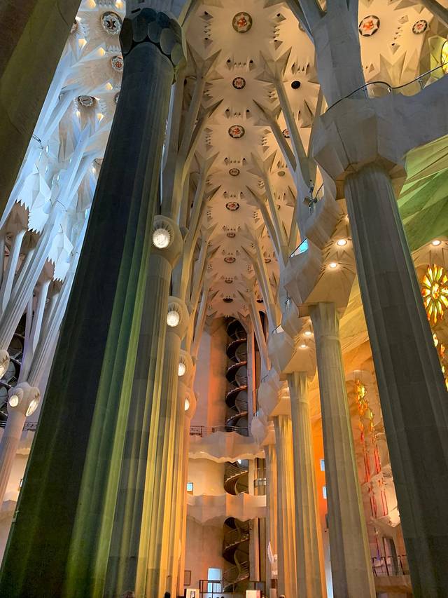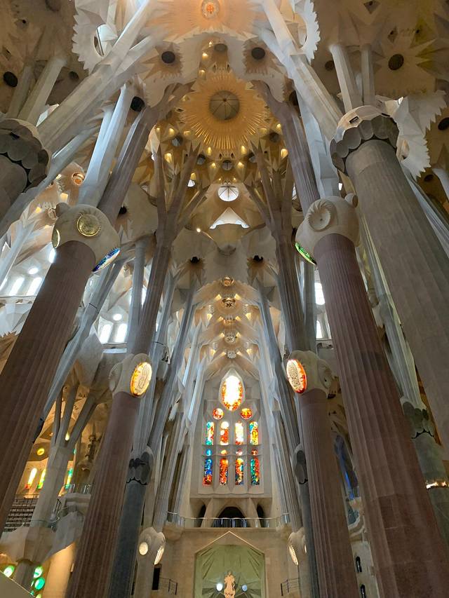 走进圣家堂的内部,你会发现这样的教堂是世界上闻所未闻的惊艳,会颠覆你对教堂所有的认知。我们去过世界上排名前三的圣彼得大教堂、米兰大教堂、塞维利亚大教堂,教堂在我们的印象中从来都是庄严、肃穆、隆重,从来没有哪一座教堂如圣家堂般明亮、灵动、梦幻、充满生机和活力,就像置身于大自然,有森林、有鲜花、有大海、有动物。