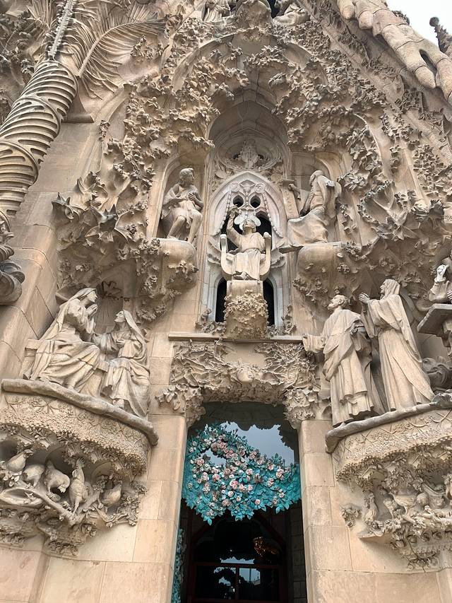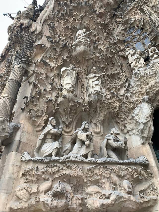 高迪在世完成了诞生立面,门口雕刻主要围绕圣家族成员和驴,牛,东方三贤,以及牧羊人。雕刻做工之复杂精细,要细细观看,认真听语音讲解才能理解其中的含义。