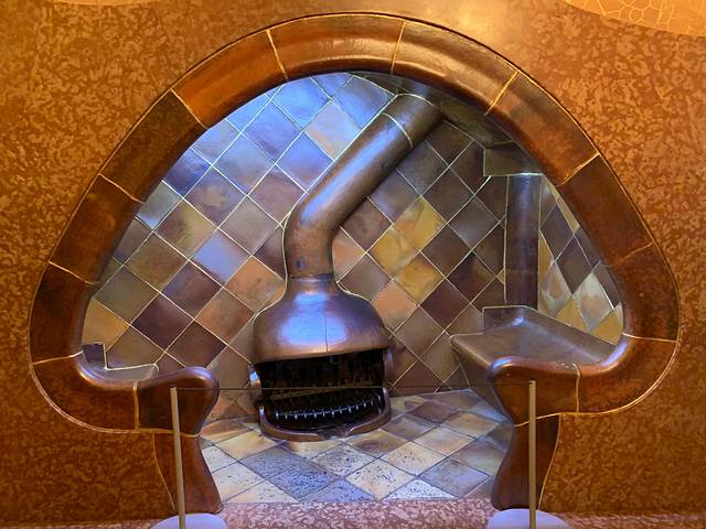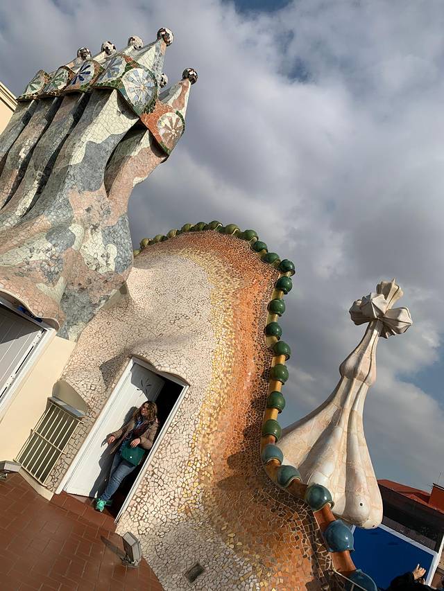 巴特罗之家的屋顶就是一个龙脊造型。虽然看不见龙头和龙尾,但龙鳞龙脊和龙骨清晰可辨。如果你站到屋顶,可以看到高迪用釉彩瓷砖做的龙鳞。