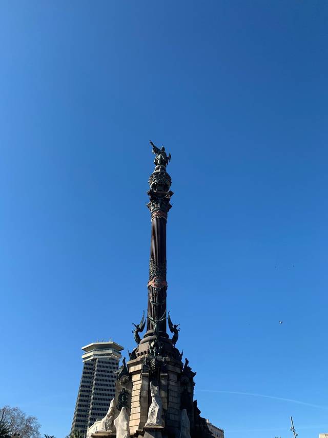 哥伦布纪念塔,位于兰布拉大道尽头,纪念1492年哥伦布第一次从美洲探险凯旋归来,巴塞罗那是第一个听到哥伦布正式宣布发现新大陆和描绘奇异新世界的地方。