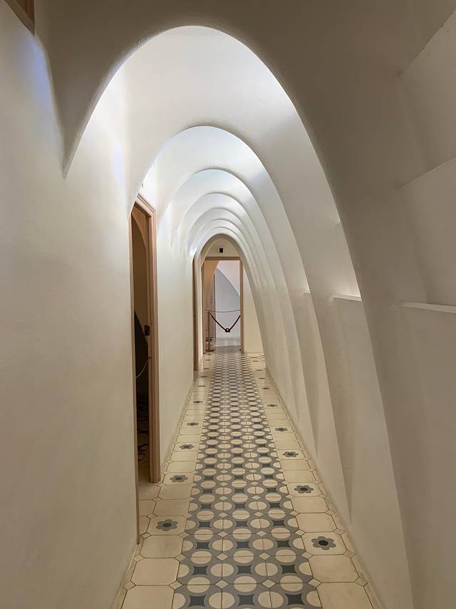建筑内部的设计秉承高迪一贯的风格,没有棱角,全是柔和的波浪形状。
