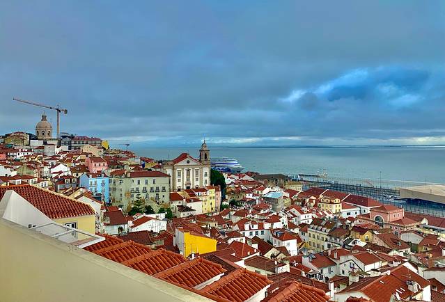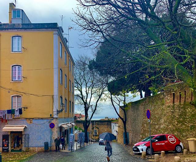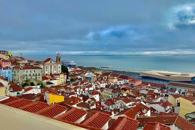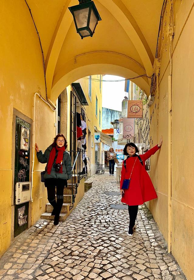 从城堡沿着狭窄的街道往下走,雨后的街道格外清新,人也少,非常安静,不时有古老的电车从身边经过,阿尔法玛区是里斯本最古老的街区,石头铺成的窄窄街道就像迷宫一样,四通八达,总能穿出来,古老的建筑五颜六色,但房顶都是红色的,充满了复古和怀旧味道,怪不得都说里斯本是浪漫的。