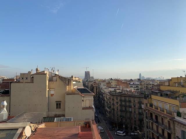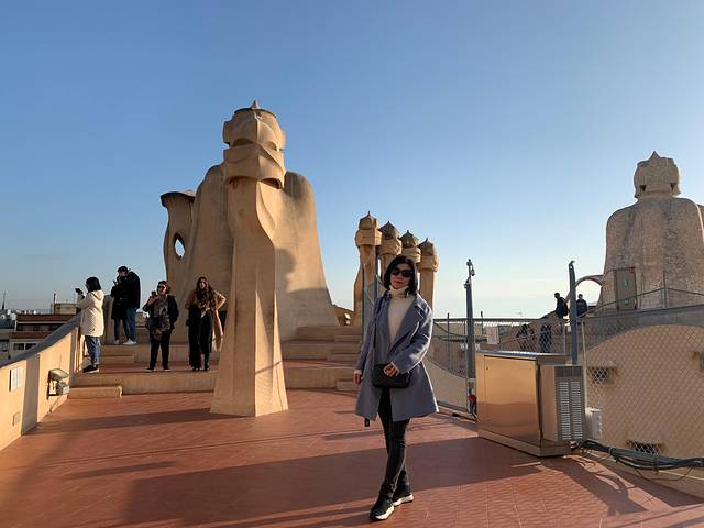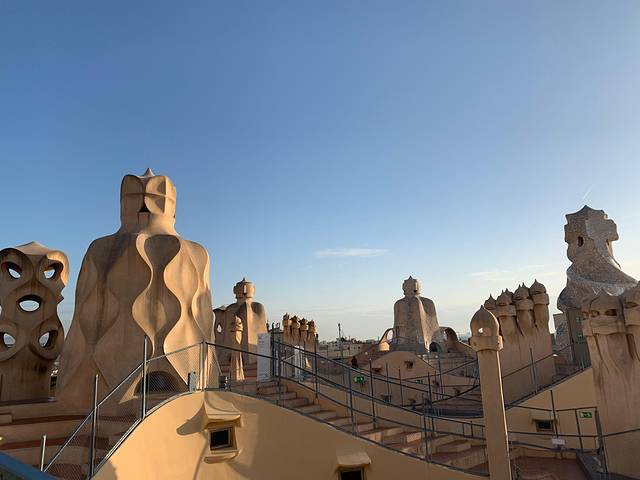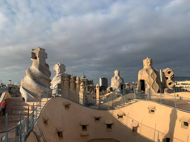 从米拉之家的屋顶可以看到正在修建的高迪另一伟大杰作圣家堂