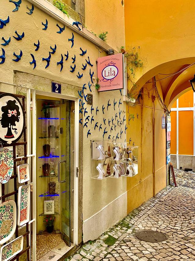 小路两边的商店精致小巧,每个店面的橱窗和门口都布置得很别致,让你忍不住走进去看看。各种手工艺品琳琅满目,看得人爱不释手。杨老师在这里选了一个精致的猫头鹰胸针,独一无二,不会撞款。