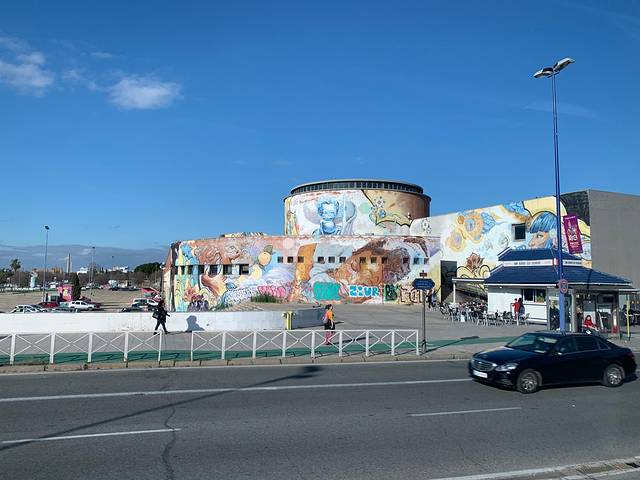 我们围着斗牛场走秀,蓝天白墙美女们帅气的身影,别提多好玩了😀