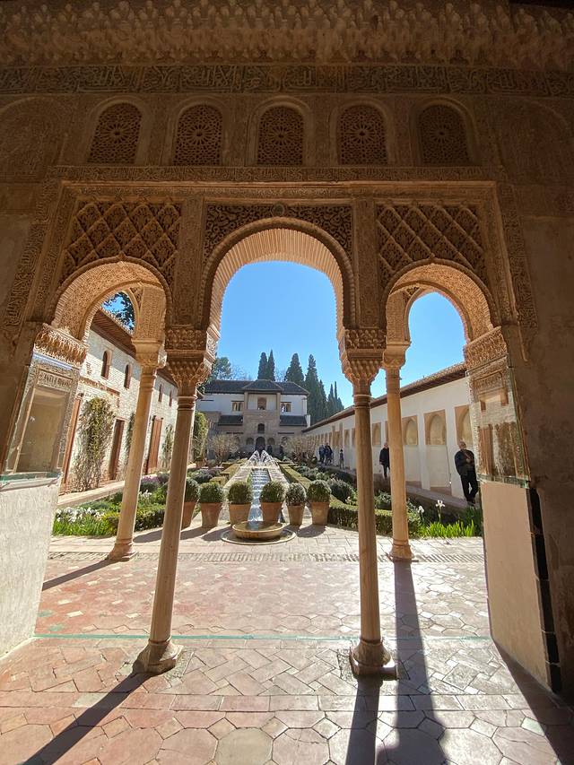 我们预约的是早上9:00的门票,提醒大家,阿尔罕布拉宫每天都是限制人流的,不提前1个月基本很难买到票,一定要提前预约,这个地方太火爆了。要求8:30就到门口,我们早早起来,从民宿走到阿尔罕布拉宫大概20分钟。阿尔汉布拉宫坐落在格拉纳达城东的山丘上,沿着蜿蜒曲折半山小巷一直向上。