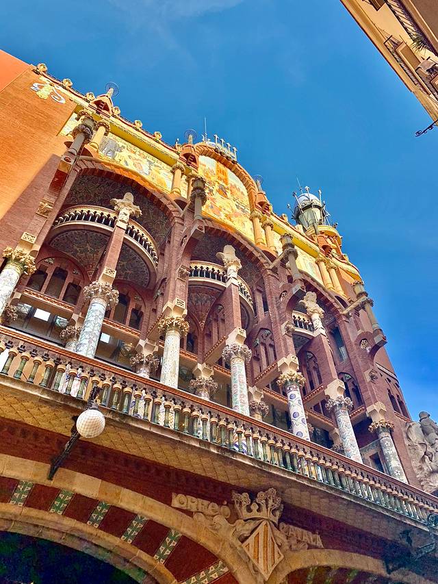 加泰罗尼亚音乐宫建筑是大师蒙达内尔1908年作品,巴塞罗那最令人震撼的现代派风格建筑之一,色彩艳丽的雕塑和陶瓷马赛克装饰是其最突出的特色。在2005年被列为世界文化遗产。