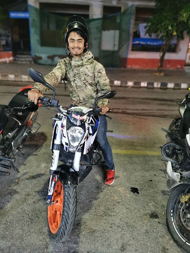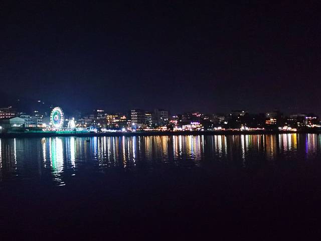 饭后,他又骑着摩托车带我去费瓦湖边观赏了夜景,第一次坐着摩托车驰骋在街头,真是难得的体验,在好多攻略里都提到在博卡拉租摩托车出游,没想到阴差阳错地就这样实现了!