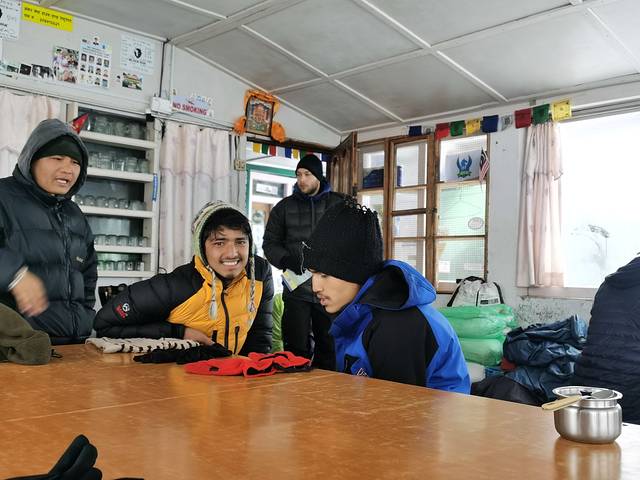 进入安纳普尔纳保护区以后,就再也不能烧火了,做饭也是用煤气罐,晚餐后围坐在一个小小燃气炉边学中文,学英文,学尼泊尔语,你教我一句,我教你一遍,不时传来阵阵笑声!这笑声暖化了寒冬,照亮了黑夜!