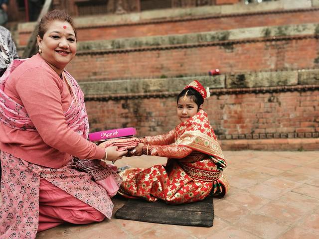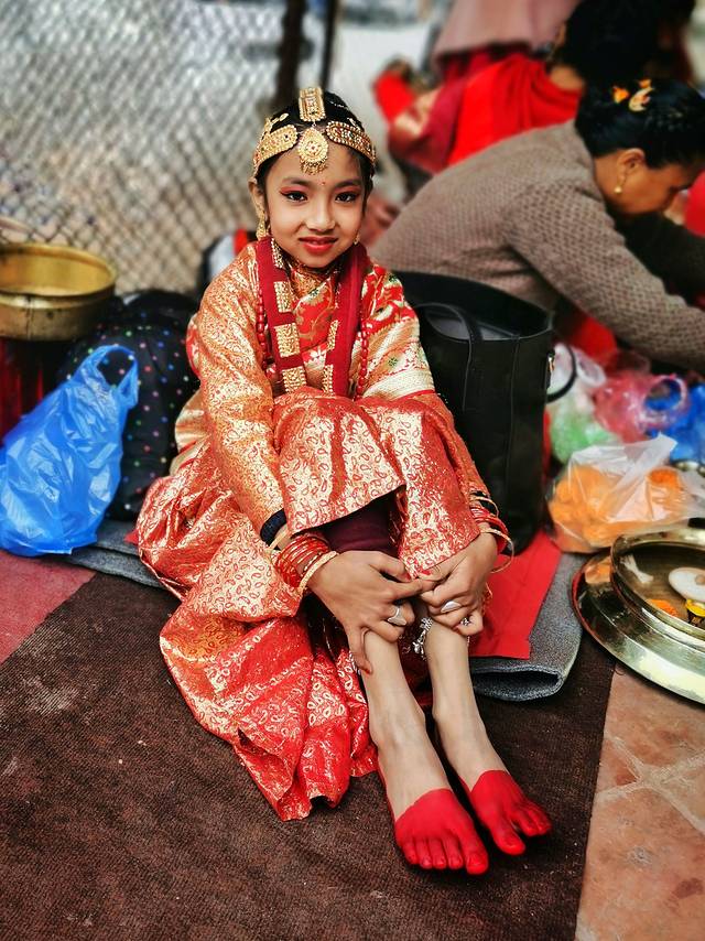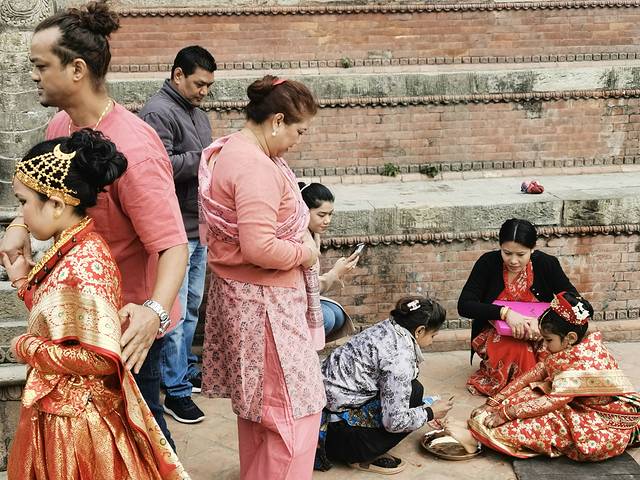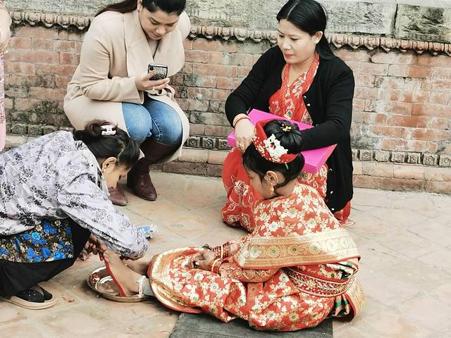 1月21日,此行的目的就是徒步,徒步结束以后,对那些上次已经去过的景点没有太多兴趣!吃完早餐后想去杜巴广场转转,当酒店员工骑着摩托车把我送到广场时,才想起身上卢比仅剩两三百元,员工笑着借给了我一千五百卢比,门票就花了一千。先来到了活女神庙,只见小小的四方院子里已经有一些游客在等候了,马上就十点了,活女神“库玛里”快要和大家见面了。在尼泊尔语里,“库玛里”意为“处女”,也被称为活女神,是从尼泊尔普通幼女中严格挑选出来的。被选为“库玛里”的幼女在三四岁时即被送去庙宇供信众朝拜,直至青春期。挑选新“活女神”的工作由皇家祭司进行,其过程既神秘又独特。“活女神”必须出自佛祖释迦牟尼出身的释迦家族,且祖辈必须生息在加德满都的两条圣河——巴格玛蒂河和威斯奴蒂河岸边,出身清白,没有任何污点。她必须具备三十二种美德,没有任何瑕疵,更不得见血,即使被划破了也不能流血。女孩的星座必须和国王一致;女孩的身上不能有任何伤疤,不能生过病,流过血。她还必须不惧黑暗,在检验时必须同杀来祭祀用的羊头和水牛头共处一室,度过一夜,以检验其不惧怕黑暗。女孩一旦被选中,就离开了世俗生活,离开了正常人的轨迹,终日生活在库玛里庙中,开始她极为荣耀却又孤独的活女神生涯。每天早上7时以前,她必须在随从们的帮助下梳洗打扮,穿上库玛里的服装。每天两次,“活女神”会身着特有的红色服装,头戴银饰,出现在窗口,供游客们瞻仰。正在这时,抬头望向那个小小的窗口,先是工作人员出现让人们放下手机和相机,不允许拍照,接着,活女神出现了,只见她面无表情地看下来,大约一分钟左右就回去了。“活女神”在重要的节日要外出巡游,平时也要接见信徒。作为神,她的一言一行都被朝拜者看作是吉凶的标志。比如,如果活女神对朝拜者大笑或大叫,朝拜者将生重病甚至死亡;如果活女神脸色阴沉,左顾右看,那么朝拜者家中肯定将发生争吵;如果活女神用手指取食物吃,朝拜者将破财等等。因此大多数情况下,女神接见民众时都必须面无表情,也没有任何动作。当然,如果女神正面看一下朝拜者,那么这位朝拜者一定会高兴好几天,因为这会给他带来好运气 她不能和家人住在一起,即使是父母也只能偶尔探望一次。直到青春期到来,继任者接班。这时候,她就必须要退休,她可以保留的,是一枚金币和一件她在任时穿的红色衣服。几百年来,库玛里女神都来自平民家庭,退休之后又回归民间。
