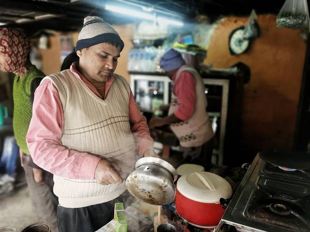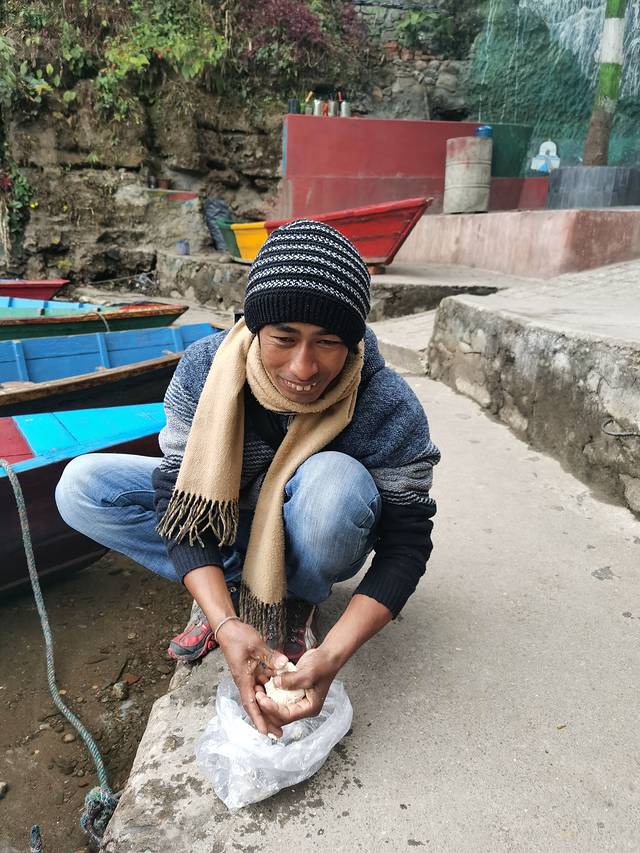 1月20日,凌晨六点多,他又摸黑过来把我送到了大巴车站,一会儿给我买奶茶,一会儿又帮我买咖喱,当我目不转睛地盯着别人正在吃的食物时,他又会默默地买来递给我,我看见一位男士吃的像面包又不是面包的食物,我告诉他时那个人正好吃完了,他笑着问别人吃的是什么,然后又跑去帮我买,一直和我等到七点半,把我送上大巴车才放心地离开,真的很谢谢他!不仅解救我们于困境,还彰显了尼泊尔人的勇敢和热情!