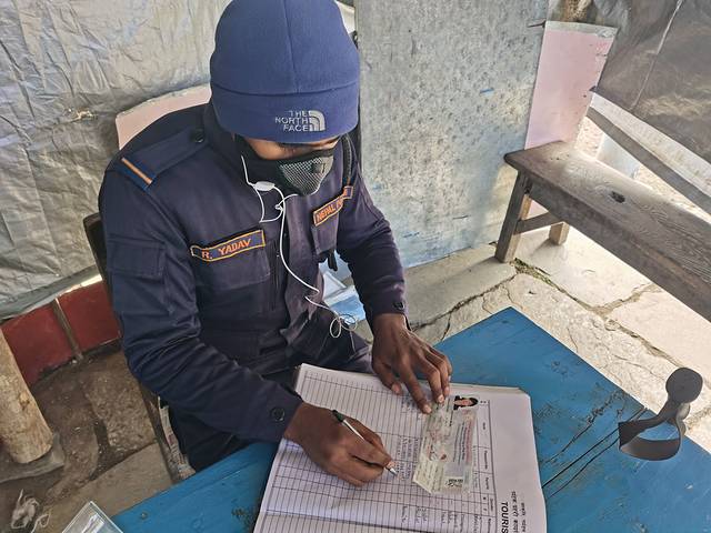 1月9日,早上起床后,整理好行李,把徒步必备的物品收拾在两个登山包中,也如约见到了我的向导,一个会弹吉它爱唱歌的快乐男孩。由于我此次的行程想更加真实地体会一下尼泊尔人民的生活,所以坚持不包车不打车。