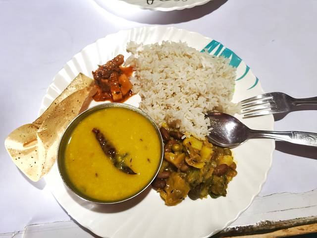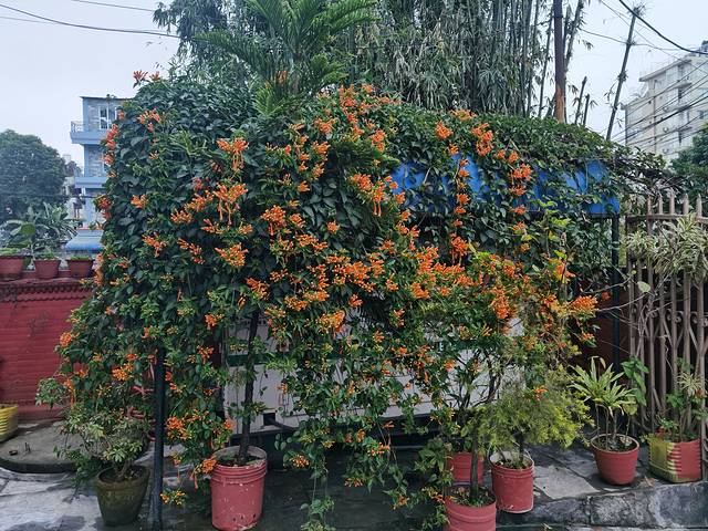 1月8日:经过了一番波折,飞机终于平稳地降落在了加德满都机场。从太原出发时天公不作美,飞机起飞前居然又下起雪,摆渡车开到了飞机前,却不让登机,一会儿又被送回了候机室,过了大约两小时,终于登机了,飞机大概滑行了半个多小时,我都已经睡着了,迷迷迷糊糊之中又被告知没有办法起飞,飞机只好又开回原位,就这样反反复复三四次,于下午两点终于降到了昆明机场,但是第二程飞往加都的飞机也赶不上了,我只好改签,在昆明住了一天,第二天再飞。第二天的飞机又晚点了,原计划到机场接我的朋友也还没有来,天色渐渐黑了,附近的出租车司机不停地向我搭讪,我没有换币,也没有买手机卡,焦急地等了半小时,暮色降临,也淅沥沥地下起了小雨。脑海中闪过了无数条朋友未能按时接机的理由,想着还是先联系上为好,于是果断地返回机场出境处换币,买电话卡,刚出大门正准备发信息时,朋友跑着过来并不停地向我挥手,两年半的时间没有见过面了,竟然一眼就认出了我,心头一热,久违了这份难得的情意。雨不停地滴滴答答着,泥泞不堪的街道,拥挤杂乱的人群,手举指挥棒的交警,还有那车里传来的欢快的印度歌曲,我确信我真的又回到了尼泊尔,回到了加德满都这座熟悉的城市,又住进了我熟悉的小院,还是那个帅气的前台小伙。放下行李,到街头又采购了一些徒步的物品,在酒店附近的中🇨🇳 厅吃了爽爽的醋溜土豆丝,回到酒店美美地坐在大厅喝着暖暖的红茶,一波三折的行程,旅途的疲惫,瞬间消失的无影无踪,觉得一切刚刚好,很惬意!