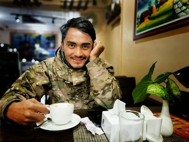 下午五点,如约在咖啡馆相见,见面的第一句话我问的就是你为什么会选择走在队伍的最前面,昨天听我的向导说,遇到恶劣天气时,没有一个向导愿意走在最前面,大家只会互相观望,因为不知道前面会发生什么。他还是浅浅一笑,坦然地回应:“我们如果不走,留在原地会更危险。”“你的同伴让你走在最前面吗?”"是的,因为我对这条最熟悉,我绝不会走错路。”当听说我们从MBC刚出发总走错路时,很温和的他突然生气地说:“你们的向导太愚蠢,这种时候是不应该单独行动的。”