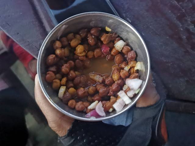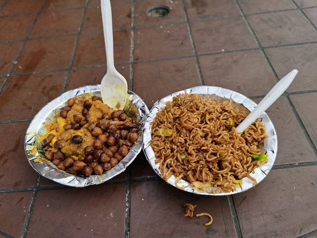 在停靠站吃到了咖喱豆豆和炒方便面,味道还好!