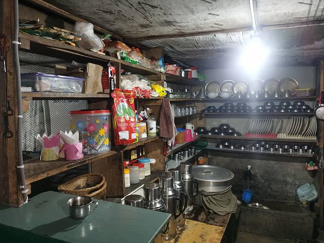 两次游览尼泊尔,终爱他们的厨房,高压锅大小不一,搁板闪闪发光,暖水壶整齐排列,瓷盘花纹清晰可见,厨房虽简陋但处处体现出高贵