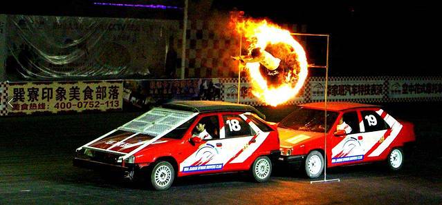 晚饭之后导游安排了观赏华家班汽车特技表演,我家小孩特别开心,在吃饭的时候已经说不停了。