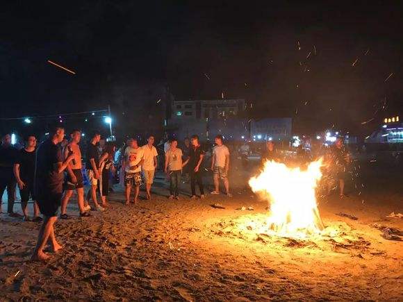 看完表演之后时间尚早,我们就回到沙滩散步闲逛,最后还跟团友搞起了篝火晚会。大家一起围着篝火跳舞唱歌,真开心!