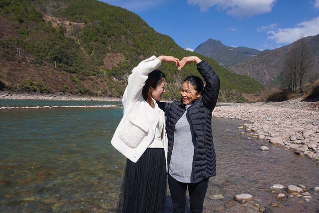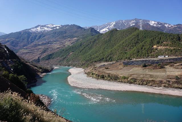 各个方位都有不同的雪山,雪山脚下的江水绵延不绝,是碧绿碧绿的翡翠般~