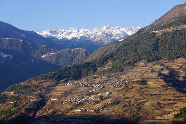 对面的山村,后面很远的地方一排雪山,这次没能够爬过去近处欣赏她,下次再来~