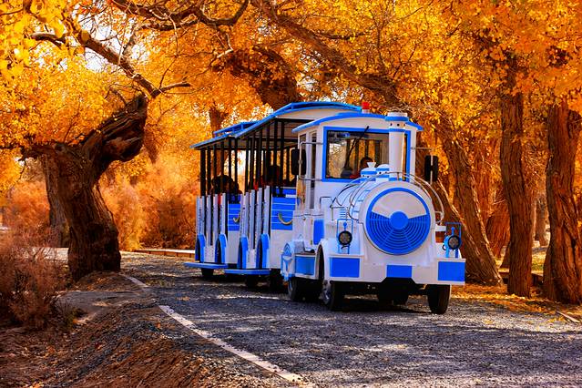 为了一睹美丽的胡杨林,我来到了大漠胡杨林景区,在内蒙古自治区的最西端,有一块被称为"祖先之地"的神奇秘境,那就是额济纳旗。在额济纳河两岸,分布着当今世界上仅存的三大原始胡杨林之一,大漠胡杨林景区是其重要的组成部分,从额济纳火车站到景区的车程只有10分钟左右,交通实在太方便不过了。比起传统的那个额济纳胡杨林,这里免去了舟车劳顿之苦,配套也非常的完善,至于景观,其实胡杨树拍出来都差不多的。