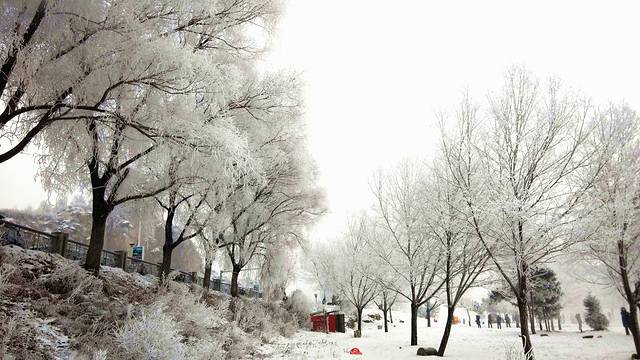 上大学四年,不知去过多少次,看过多少雪景,依旧喜欢的不得了······每次下雪,看到树上的雾凇都十分兴奋,每每此时,就会被当地东北的小伙伴嫌弃┮﹏┭他们还把美丽的雾凇叫做“树挂”······什么鬼,虽然是很形象啦,但是,美感瞬间掉了几个档,哈哈