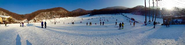 吉林有个特有名的北大湖滑雪场,但距离有点远,好在市区就有一个小型朱雀山滑雪场,虽然小,但也够我们这帮南方孩子嚯嚯了······
