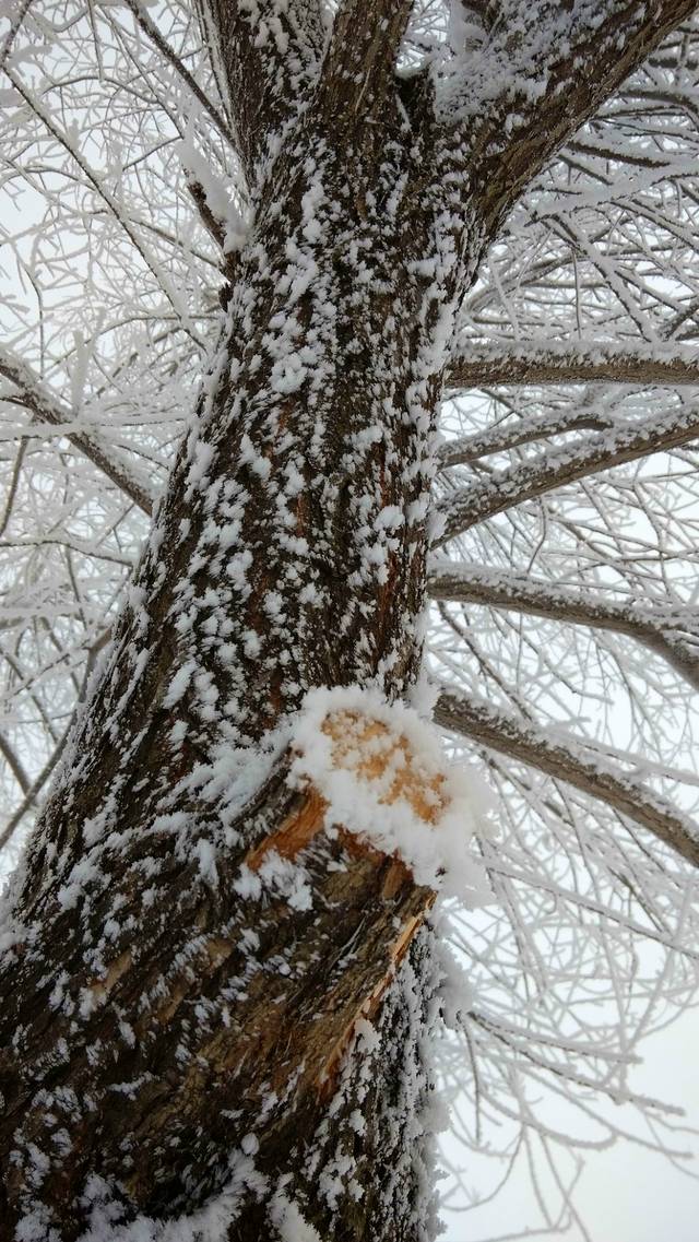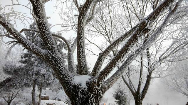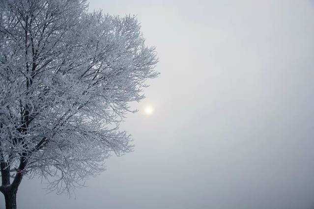 近距离查看能真实看到树干上的冰花,甚至雪花的花瓣都能数出来,晶莹剔透,美到醉了~