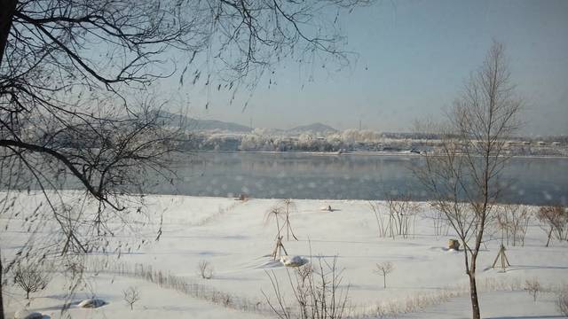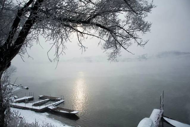 看雾凇这事真是太需要运气了,我们这次是幸运的,虽然没能达到震撼的地步,但也是非常美的。先来张吉林雾凇小岛的风景,我不会告诉你们我们来晚了的······
