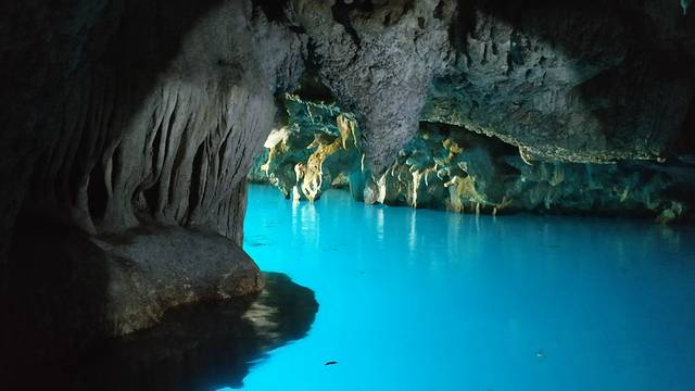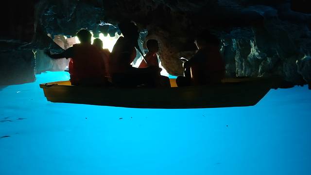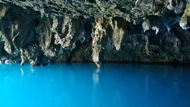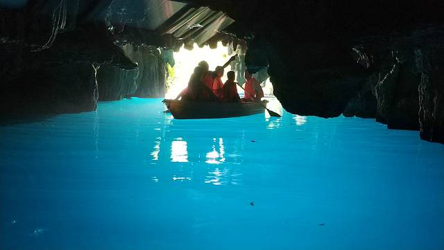 三五好友同乘一艘小船,一路唧唧咋咋,一起探寻洞内的玄机。船下瓦蓝瓦蓝的泉水真是让人陶醉!!!