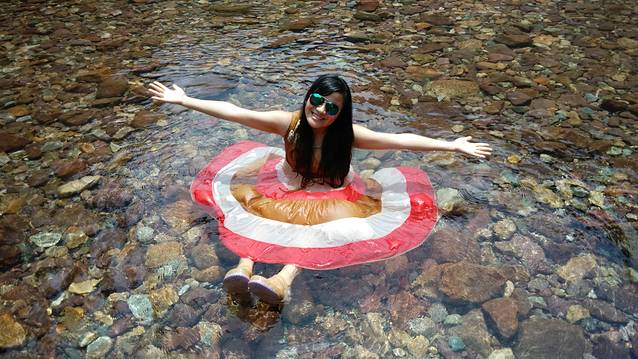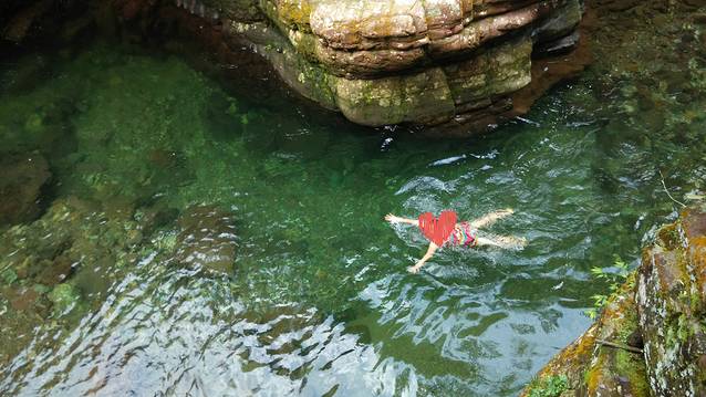 再往深处去,是一个叫铜鼓峡的峡谷,里面有几个天然的水潭,看同行的阿姐自由自在的游了起来,可惜我是个旱鸭子,只能在浅坑处泡泡·····ε=(´ο`*)))