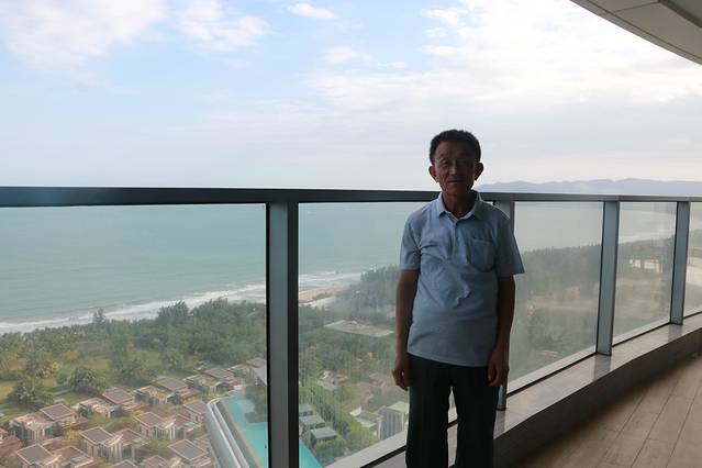 我最开始是不这样打算的,因为需要三个房间,在价格上实在是有点难以接受。但是我老公坚持说既然来了就体验一下,况且带着父母呢,让他们也感受一次,若不住以后后悔也晚了。所以前一天晚上我就在去哪儿网上预约一个位于海棠湾保利酒店的一家民宿客栈,210平米,3室1厅2卫1厨,网上介绍说拥有270度无敌海景,每晚1200元左右,比起星级酒店动辄每晚八百一千的房费,算是非常划算了,我订的是连住三晚。去之前也害怕失望,但是当我们一行人进入房间,大家都情不自禁发出赞叹声,顾不上收拾行李,纷纷拿出手机,拍照录视频,因为实在是太美了,完全称得上是无敌海景房,超大阳台可以看到大海,正对面就是蜈支洲岛,来往的船只穿梭不停,房间内各处非常干净整洁,阳台有全自动洗衣机,我们把出行以来所有的脏衣服都清洗了一遍。总之,大家都挺开心的。房间设计也很好,三个卧室都是可以实现趟在床上看到海。我们入住当天恰逢海南国际电影节,酒店周围人流如织,我们在阳台上就可以看到现场,我家老公用手机摄像头放大功能就可以看到现场登台表演的明星。值得一提的是,本来在北京的时候我就有和老公一起看日出的想法,但是早上我们都起不来,北京又冷,就没有实现。但是在这个酒店,每天早上都可以看到璀璨的海上日出景象。但是碍于我拍摄技术,拍出来效果不怎么好。还好,风景都存在了美好的记忆里。但是,唯一的缺点不足就是吃饭问题,周围餐馆很少,需要开车十分钟左右到不远处的一个商业街,味道也不怎么好。