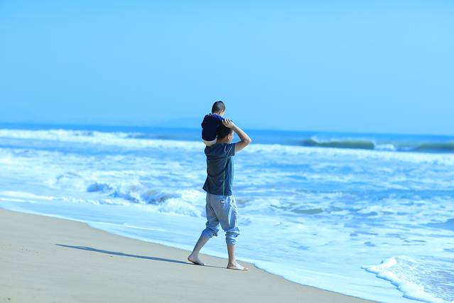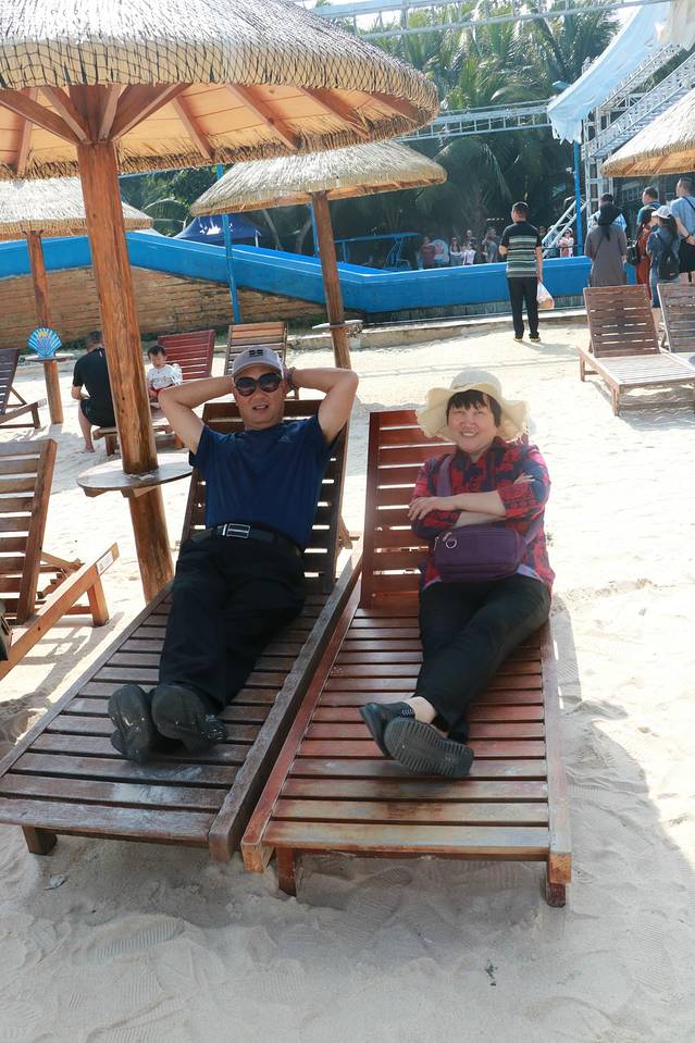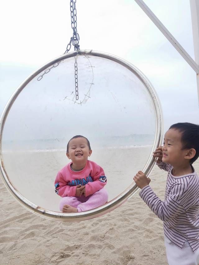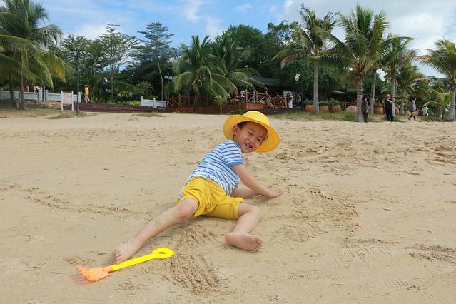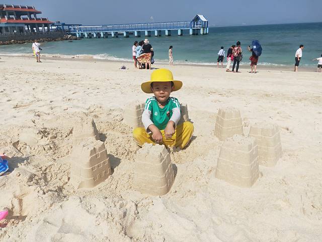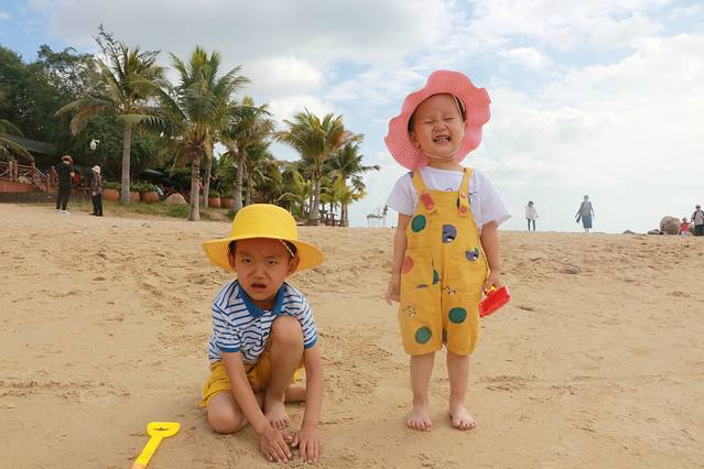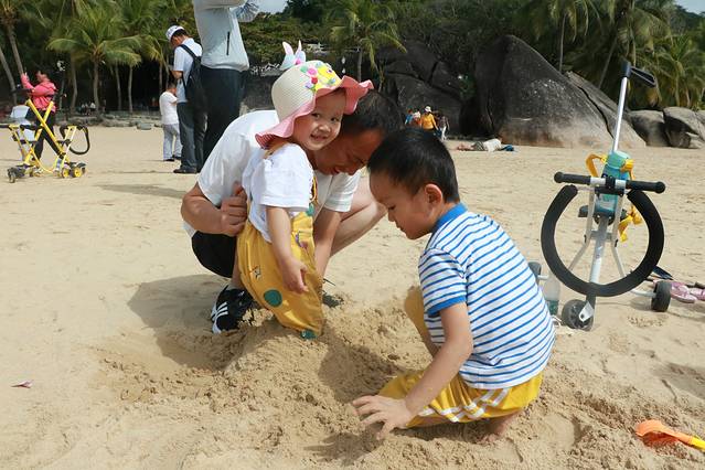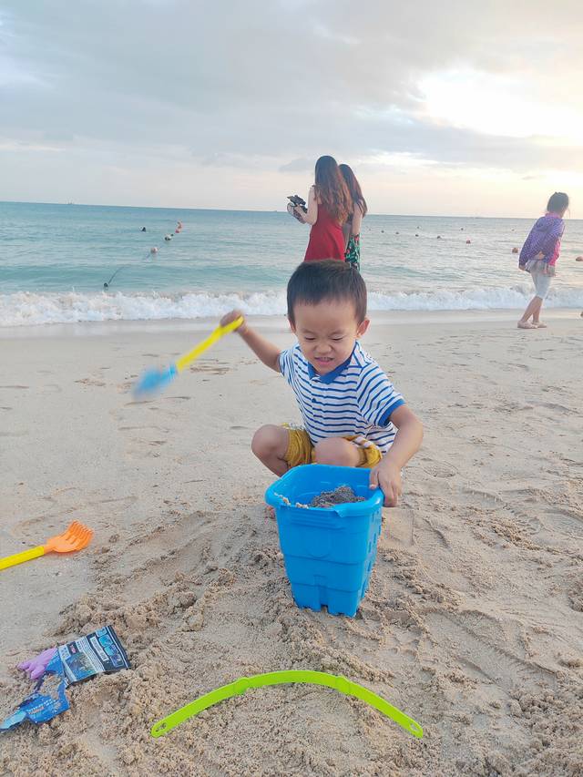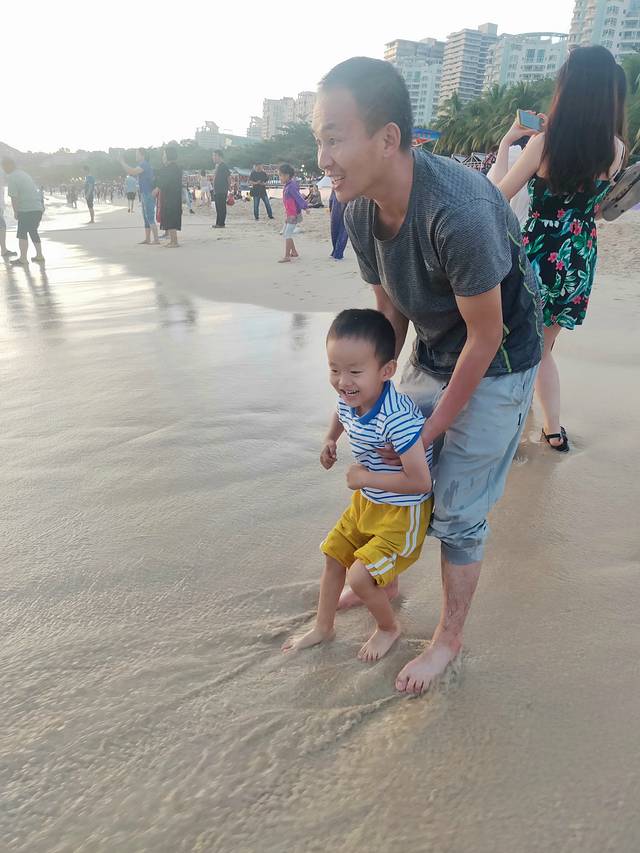 温泉回来之后,时间尚早,长辈们回宾馆休息,我们一家四口到大东海玩耍。