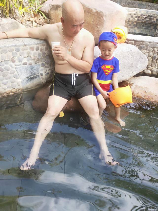 其中,最让我感慨的是,六年前我们结婚度蜜月来到这里泡温泉,那时候在小鱼温泉里面,我就跟老公说,应该让我爸来的,我爸那个脚伸进去肯定周围的鱼都过去咬死皮了。那个时候只是开个玩笑,哪能想到之后六年后我们真的就带着我爸过去了,而且真的周围一大片小鱼都在咬我爸的脚,气的我儿子在旁边发脾气让我爸走开。想想真是浮生若梦,很多事情只是想想是不够的,只要去做,就有实现的可能,与君共勉。
