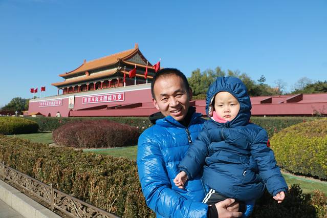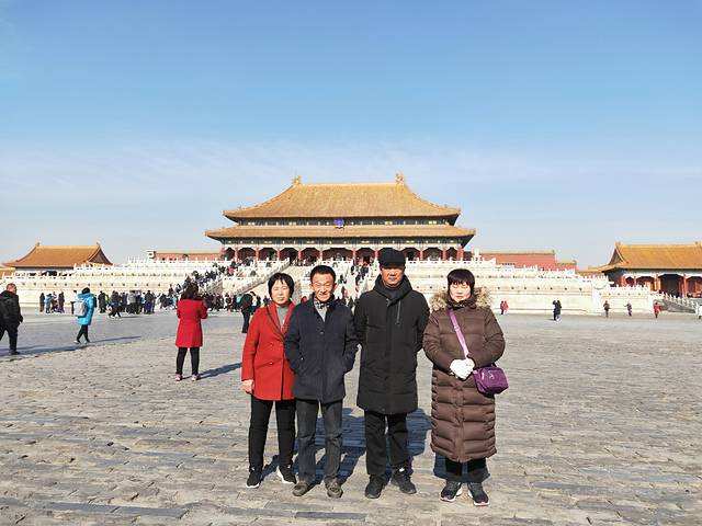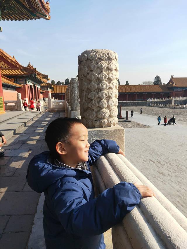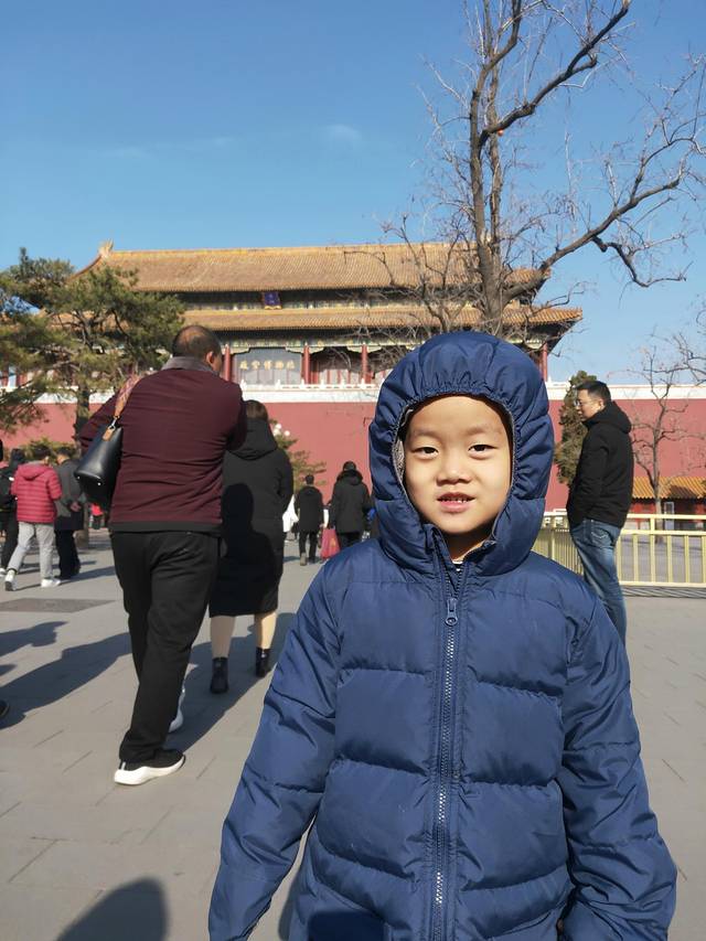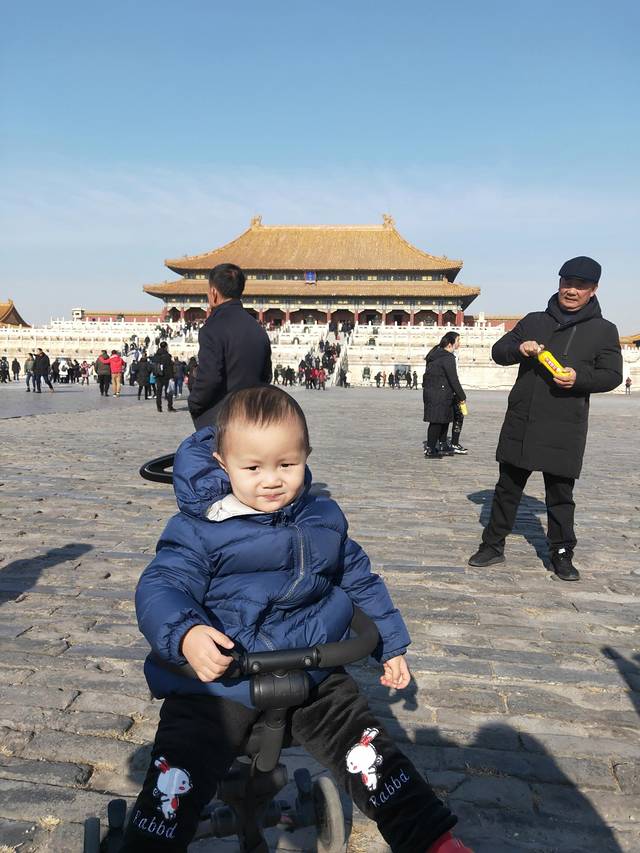 第三天,我们准备参观故宫,故宫只能网上订票,到现场刷身份证直接进入,带小孩的进入后留心看两侧有游客中心,里面有热水供应,也可以租婴儿车,押金三百,到终点后拿票退还押金,也就是免费的。我去的时候里面工作人员说没有婴儿车了,但是我没有放弃,我就在那儿跟他磨叽了一会,抱着女儿争取了一下,那人果然从后面给我们拿出来一辆,很新。故宫很大,依旧考虑到父母体能原因,我们只走了中轴线部分,也接近两个多小时了,也是很累了。我原以为故宫就是各种建筑,本来没什么期待,但是一进去,立刻被那种红墙黄瓦的威严气势和文化底蕴震撼,我个人全程都较为激动。父母也孩子们也都有些兴奋,东瞧瞧西看看,不是这个不见就是那个找不到了,话不多说,图片上。
