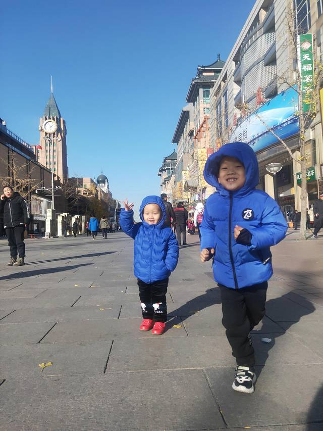 而我等孩子们睡醒吃饱后,就带他们去玩了!现在回想,那天真好啊,带着孩子们无忧无虑地在北京城街上闲逛,阳光那么好,孩子们笑的那么甜蜜,旁边的行人纷纷侧目看他们追逐打闹,面带微笑地看着我的两个可爱的孩子在街上玩耍,那一刻的场景永留我心间。
