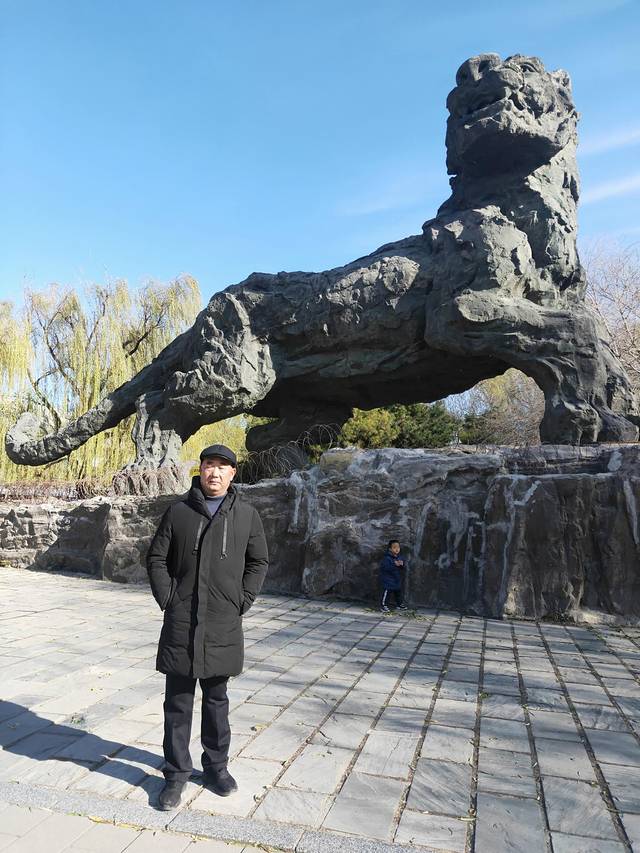 有范儿,我爸年轻时候可帅了!狮虎园门口的石像
